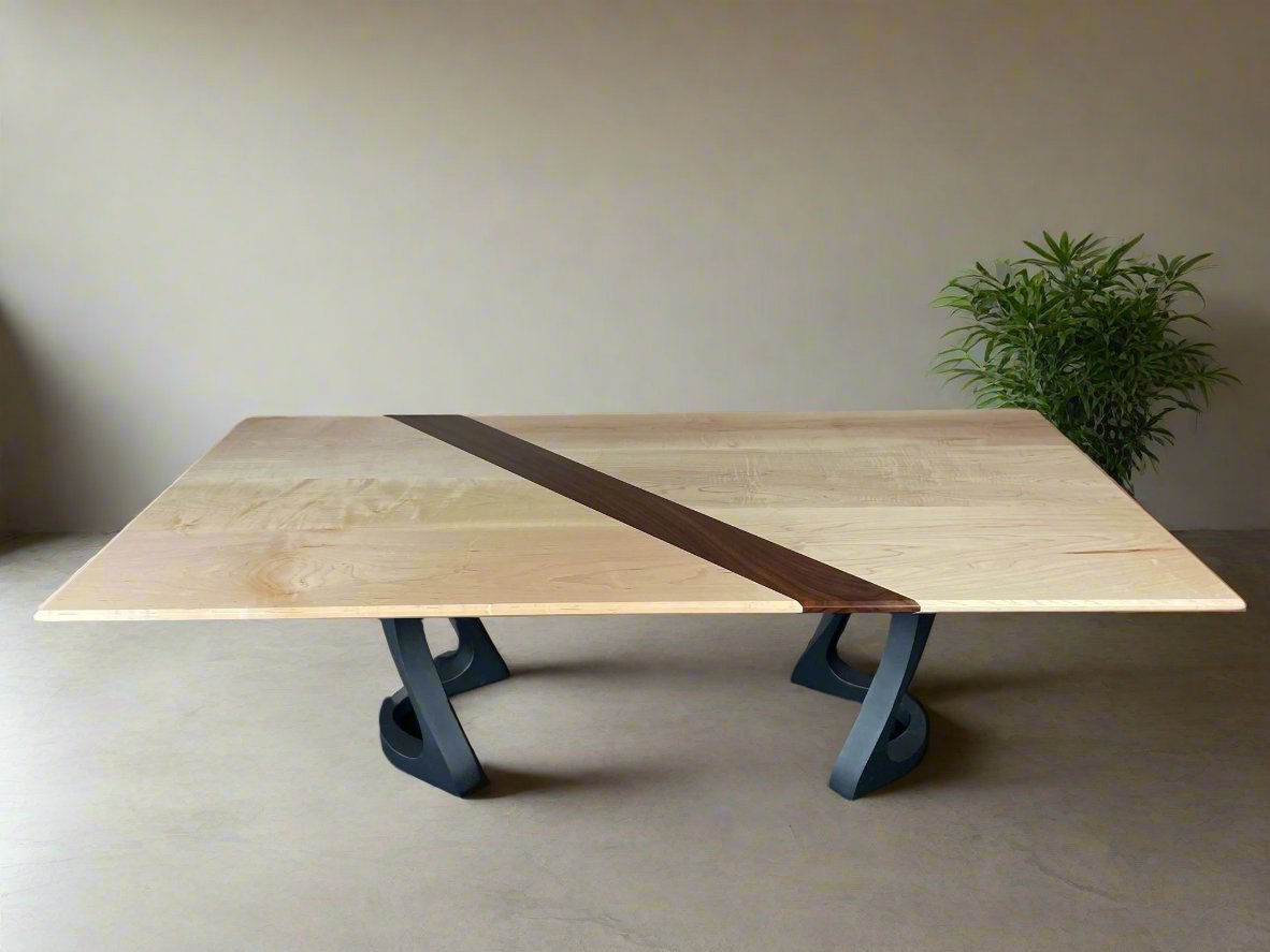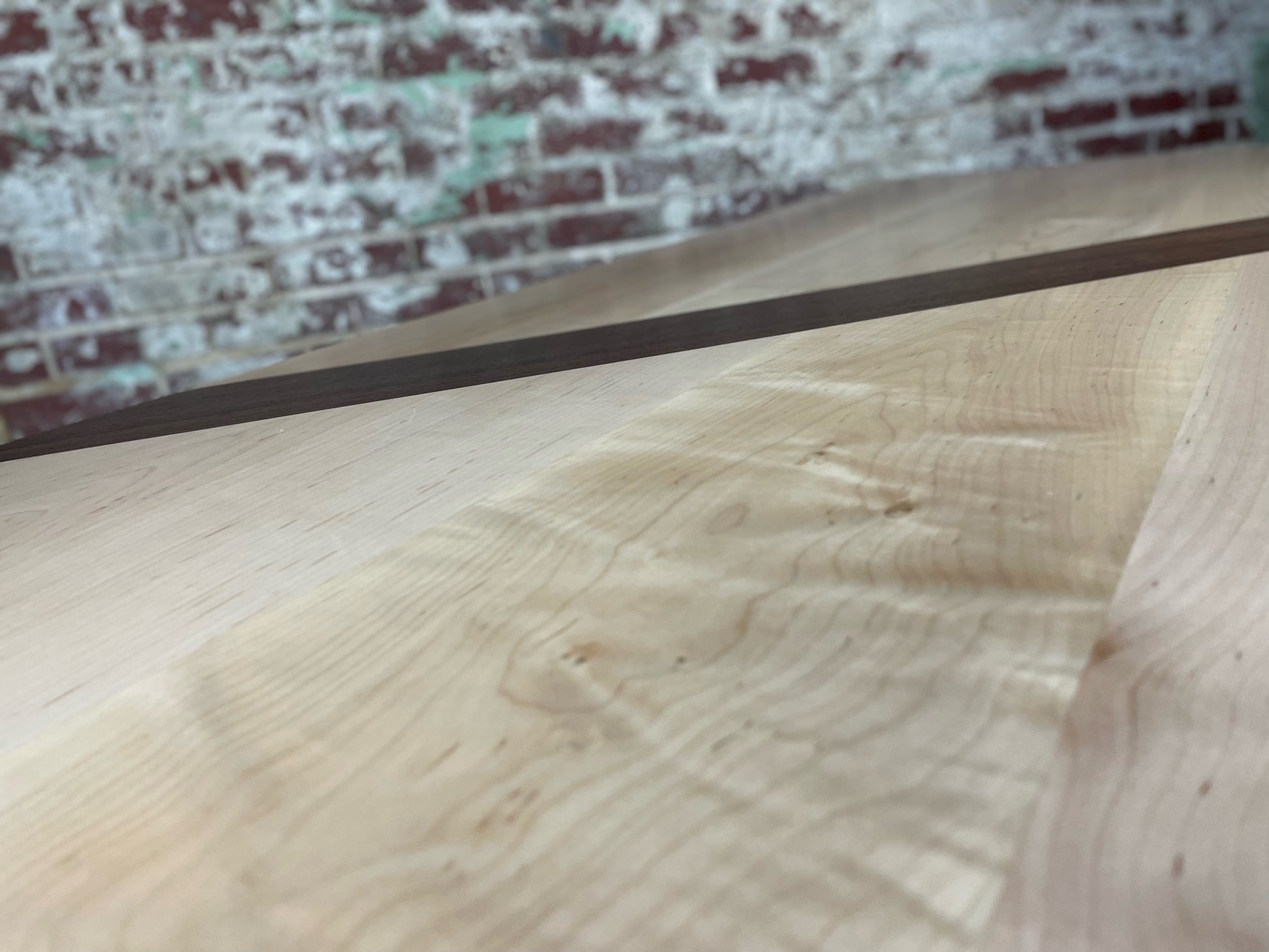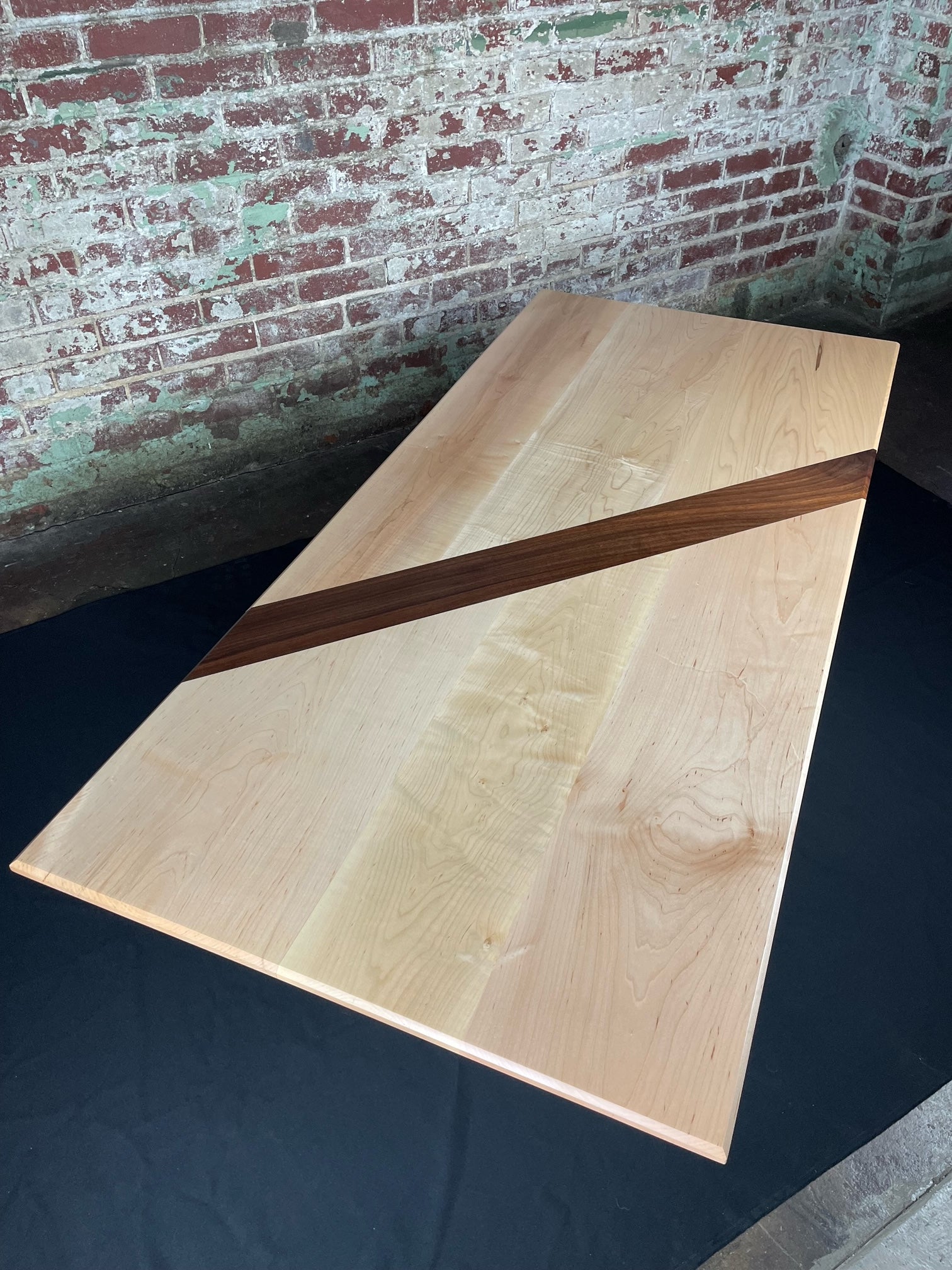 A hidden gem designed and built by Woodrich, this coffee table is made of maple, with a black walnut inlay! All of our trees are locally sourced from Pennsylvania! If you would like this top or any other tops mounted to different bases, please feel free to send us an email!
