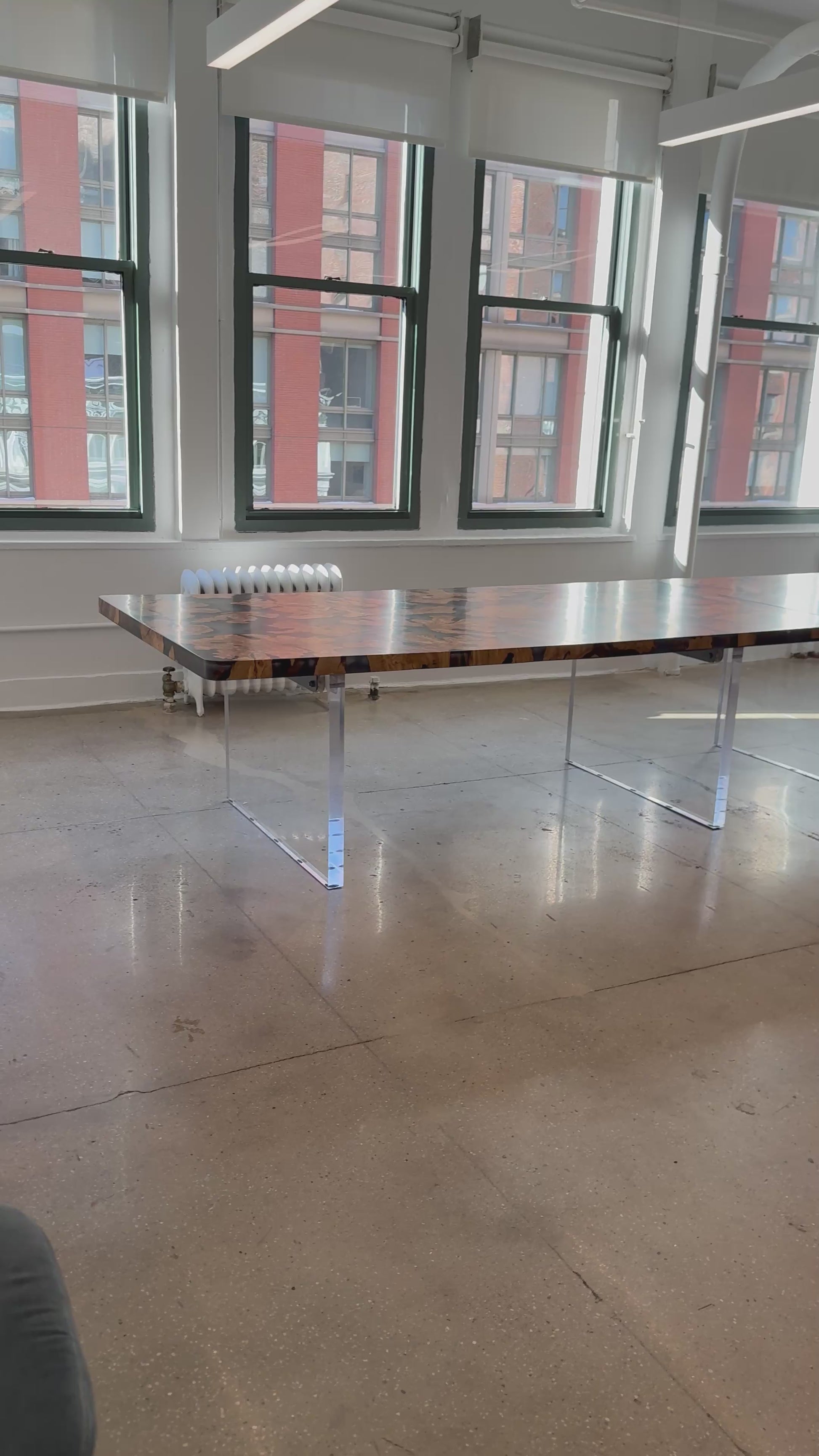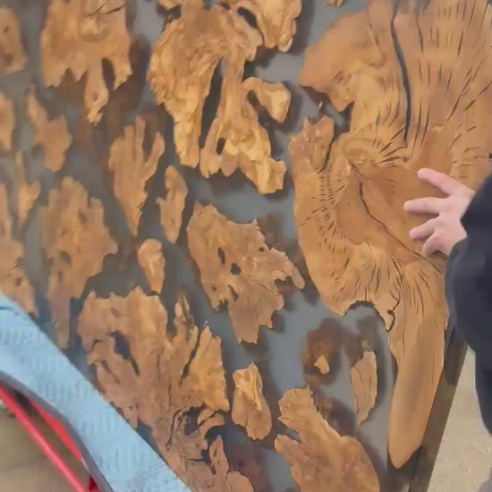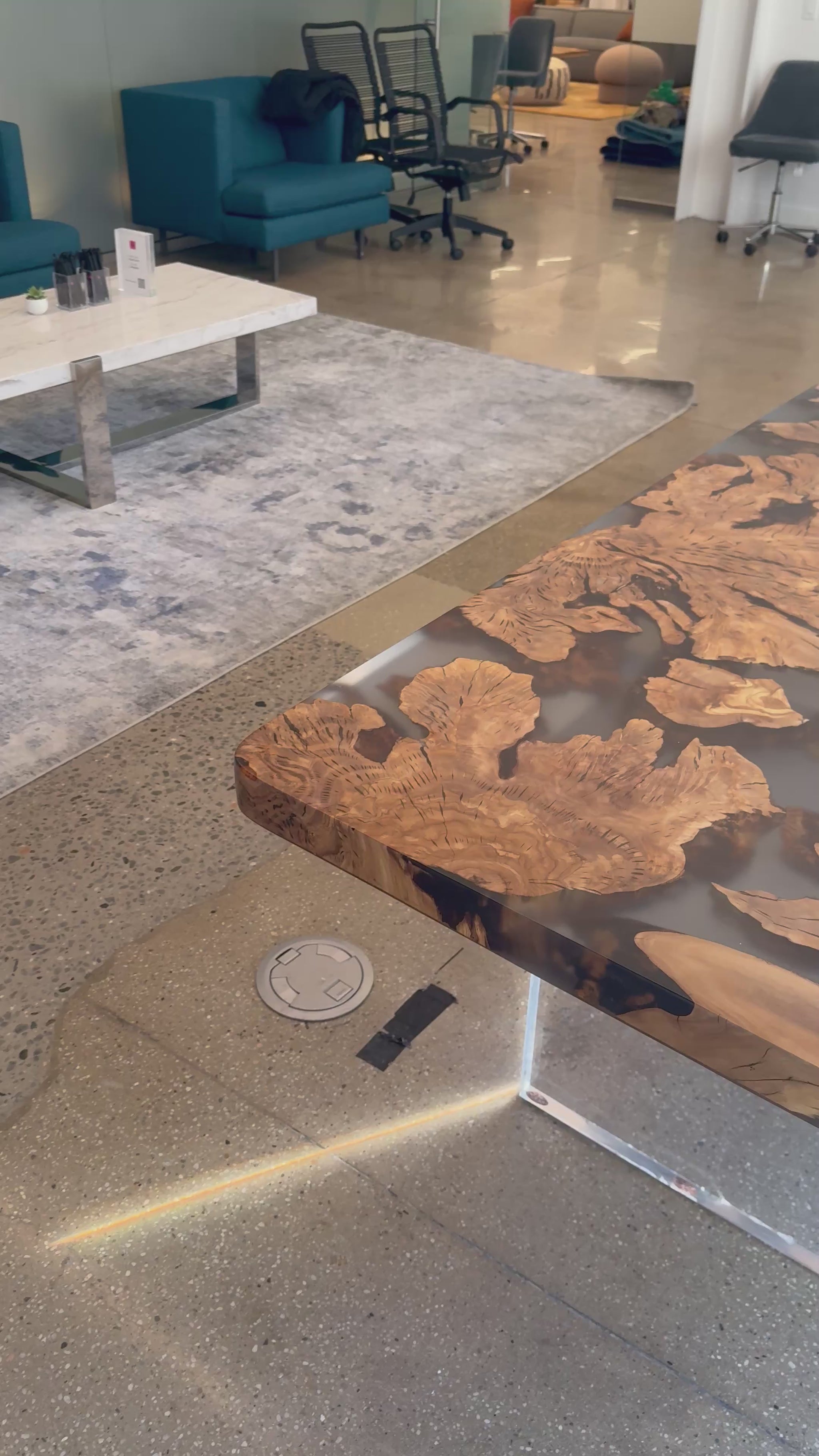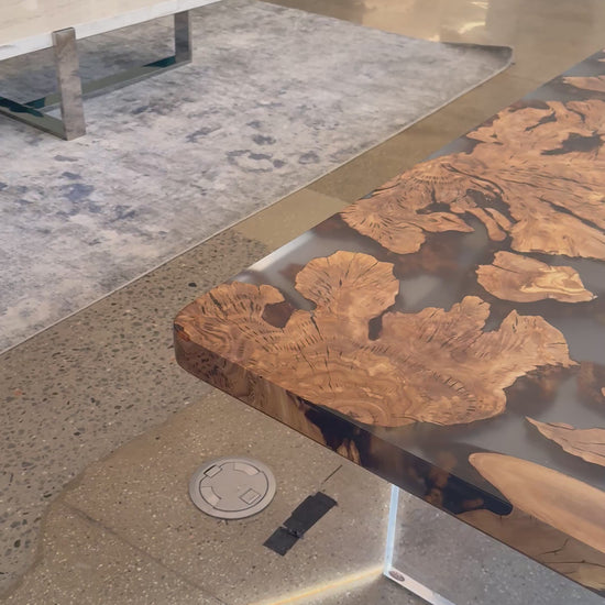 This White Oak burl & epoxy conference table is the modern design your space deserves. By utilizing burl wood, unique tree growths that create some of the most incredible grain found in nature, we make tables that enthrall the onlooker. This table can be made in nearly any custom size for any space!